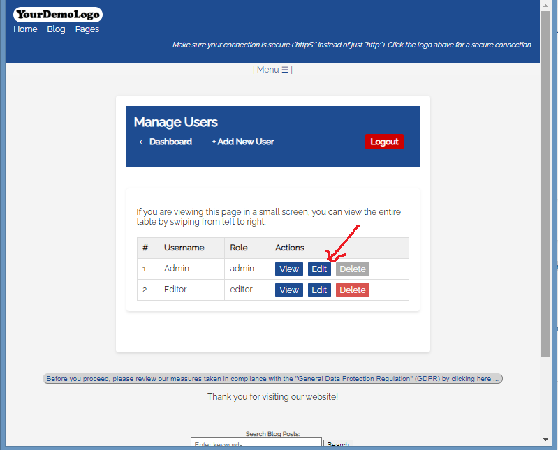 Note that as an Admin, you can change all the Users in your CMS, like "Username", "Role" and "Password".